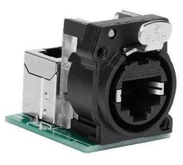 The NETRON PCBCAT6 provides a standard D-Size locking CAT6A RJ45 Output connector on a small PCB.