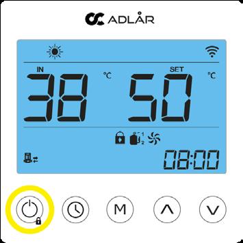 1. Houd 2 seconden ingedrukt om de warmtepomp IN te schakelen.