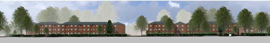 EV EV BS BS SS Ratcliffe Road Elms Road Elms Road Ratcliffe Court KnightonDrive Elms Road Nature walkway providing a circulate route around the apartment block through species-rich grassland and tree orchard. Seating opportunities to be provided for rest and reflection Existing shrubs to be reviewed and removed to open up the area whilst maintaining natural screening of adjacent properties. Native hedgerow to be planted along the boundary and species-rich grassland to the fringes to enhance biodiversity Car parking area with turning head, offering delivery access and bin collection Existing mature trees to be retained. Shrub planting along Ratcliffe Road and Elms Road to be removed. Railings to be repaired and repainted and beech hedgerow planted to formalise the boundary Vehicular access points to be defined by splayed wall/railings with signage, and ornamental planting Pedestrian entrance with splayed wall/railings, hedgerow and ornamental planting Amenity grassland to surround attenuation swales and new native trees to compliment existing trees, helping to filter views of the buildings Main pedestrian entrance providing the main access to the three central buildings and the main activity zones Rain garden planting corridor to attenuate surface water, feed trees and planting, and create separation between the different activity areas. Timber deck to provide connection over the swale Outdoor eating areas surrounded by hedges and ornamental planting. Adjacent pergola provides direction to the pathway and dappled shade Petanque court with adjacent seating Horticultural area comprising raised beds, greenhouse, tool shed and composting bins Car parking area with turning head, offering delivery access and bin collection Walkway along the front gardens, with connections to private terraces for ground floor apartments Existing hedgerow to be retained and bolstered where required. Existing closeboard fence to be replaced Existing trees to be retained where possible and bulb planting introduced to offer seasonal colour Orientation area with feature paving marking the connections to the building and creating a retaining seating wall to offer separation to the dining areas Breeze house to provide a covered meeting space with seating and surrounding rain garden sensory planting Wildlife orientated focal feature (eg. bird bath, bird feeding table, etc) Hedgerow to provide separation from parking and garden areas