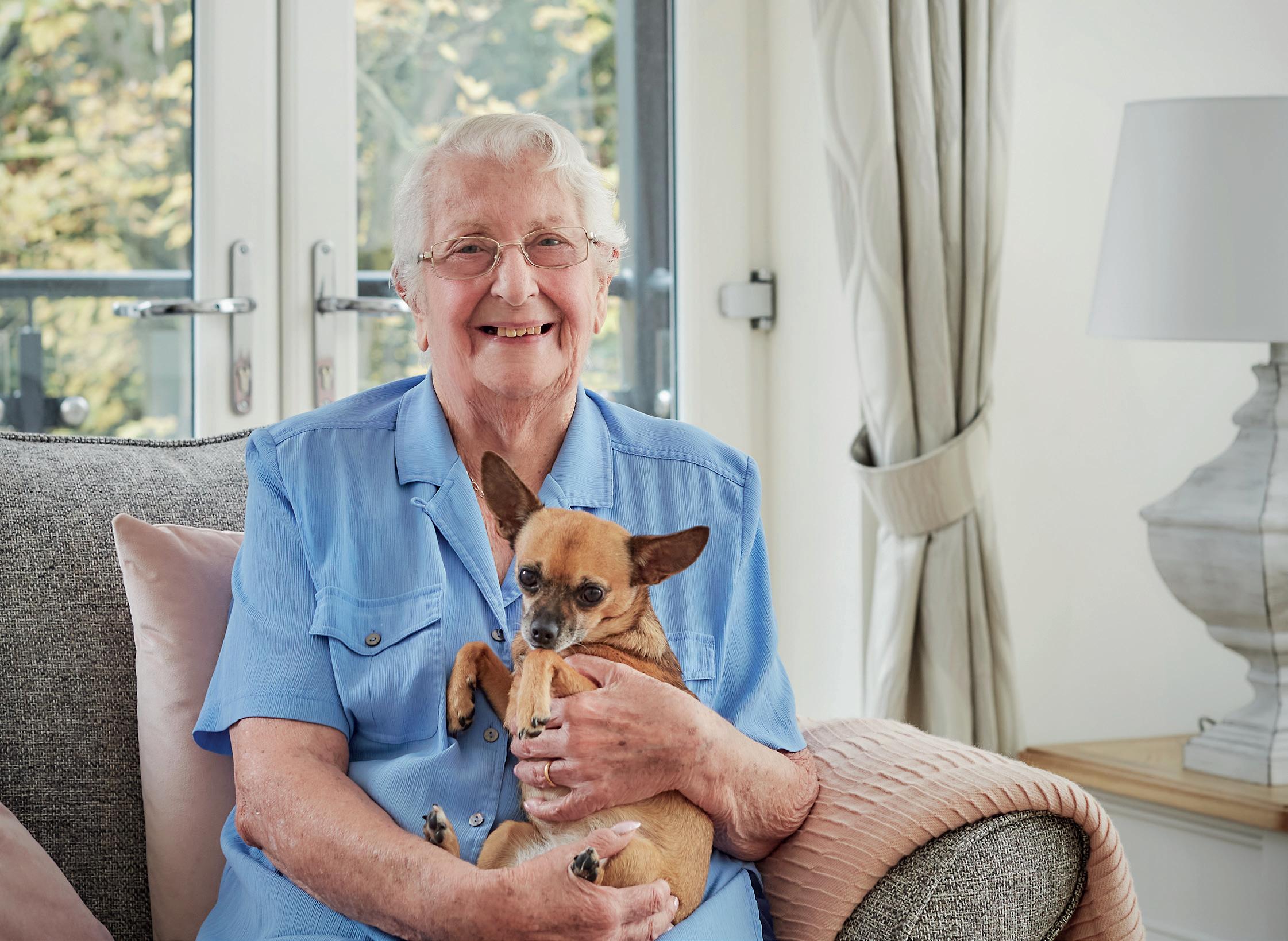“Having the dog, it helps a little bit. It gives you a bit of comfort, you know. And the staff and everybody, they are wonderful. They’re lovely, every single one. I’ve got no complaints at all. I’m really happy that I moved now. It really is lovely here. I’ve got a balcony and I’ve got plants out on it. Everybody here is there for you.”