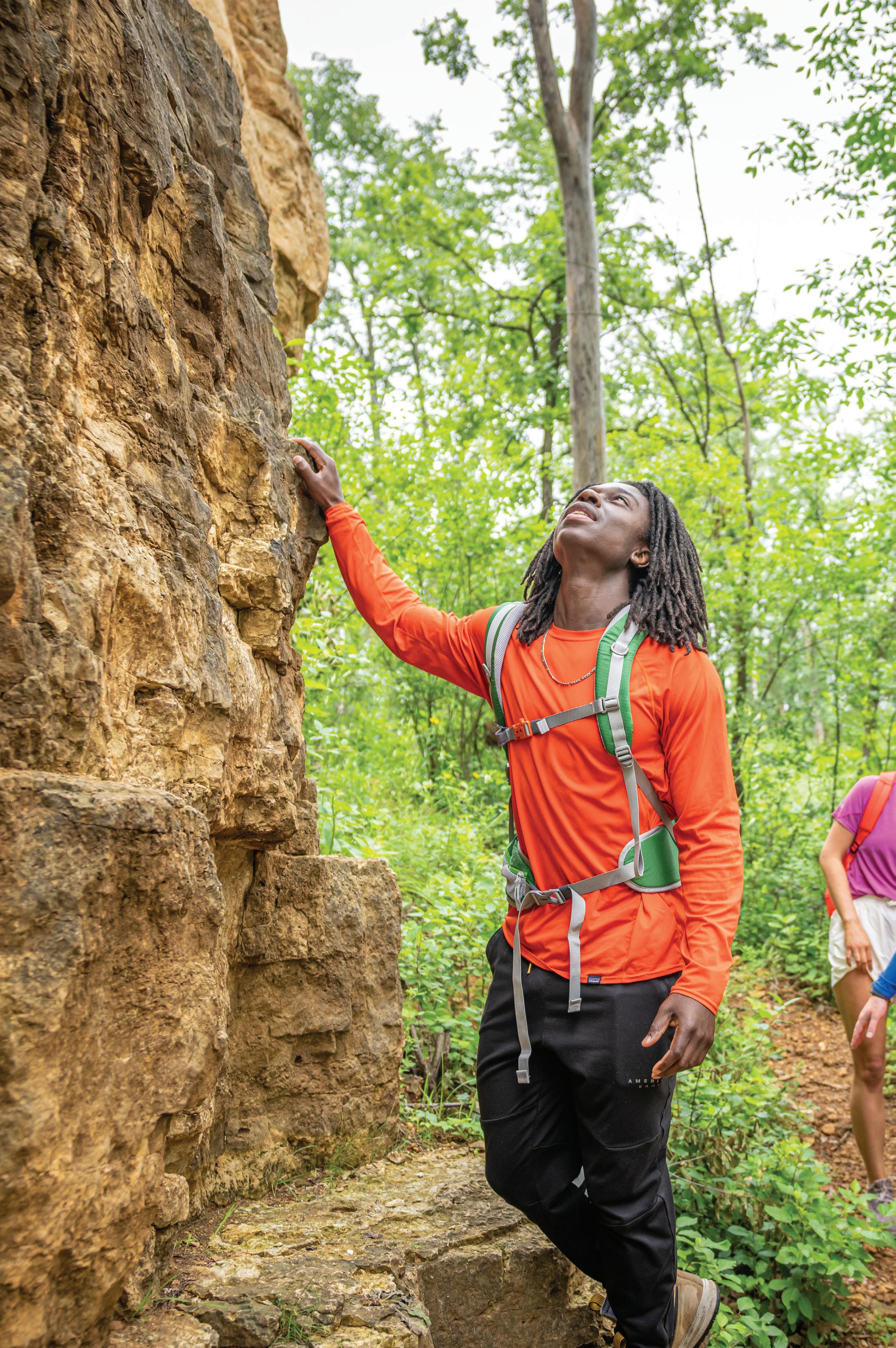 trails for hiking, biking, horseback riding, cross country skiing, snowshoeing, and snowmobiling. And if you want your getaway to be overnight, bring your camper! Additionally, within the park area are both shaded and exposed cliff habitats and talus slopes supporting wet-mesic forest. Outstanding examples of conical and effigy mounds are located above the escarpment as well as a 40-foot observation tower offering a breathtakingly spectacular view of Lake Winnebago and its surrounding landscape.