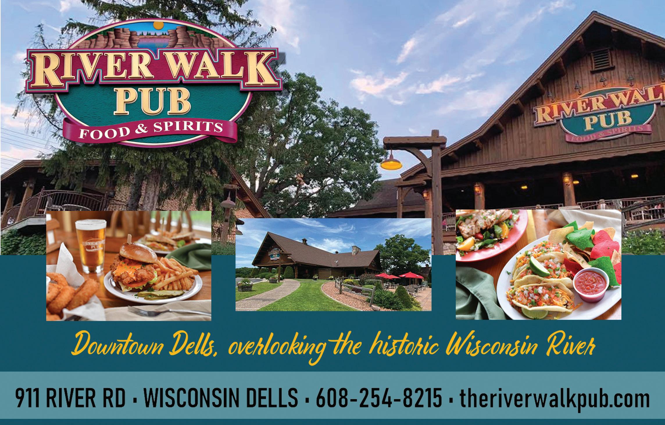 When you want your meal paired with “river energy,” RIVER WALK PUB FOOD & SPIRITS leans hard into its setting: it overlooks the upper Dells Wisconsin River and has outdoor deck seating. The best part is it’s only two short blocks from downtown Wisconsin Dells. A live music schedule, a Party Room that lists 50–60 guest seating, a full bar and walkout access to a stone patio with the scenic Wisconsin River walk? You could “accidentally” stay for hours. And Why not? You’re on vacation!