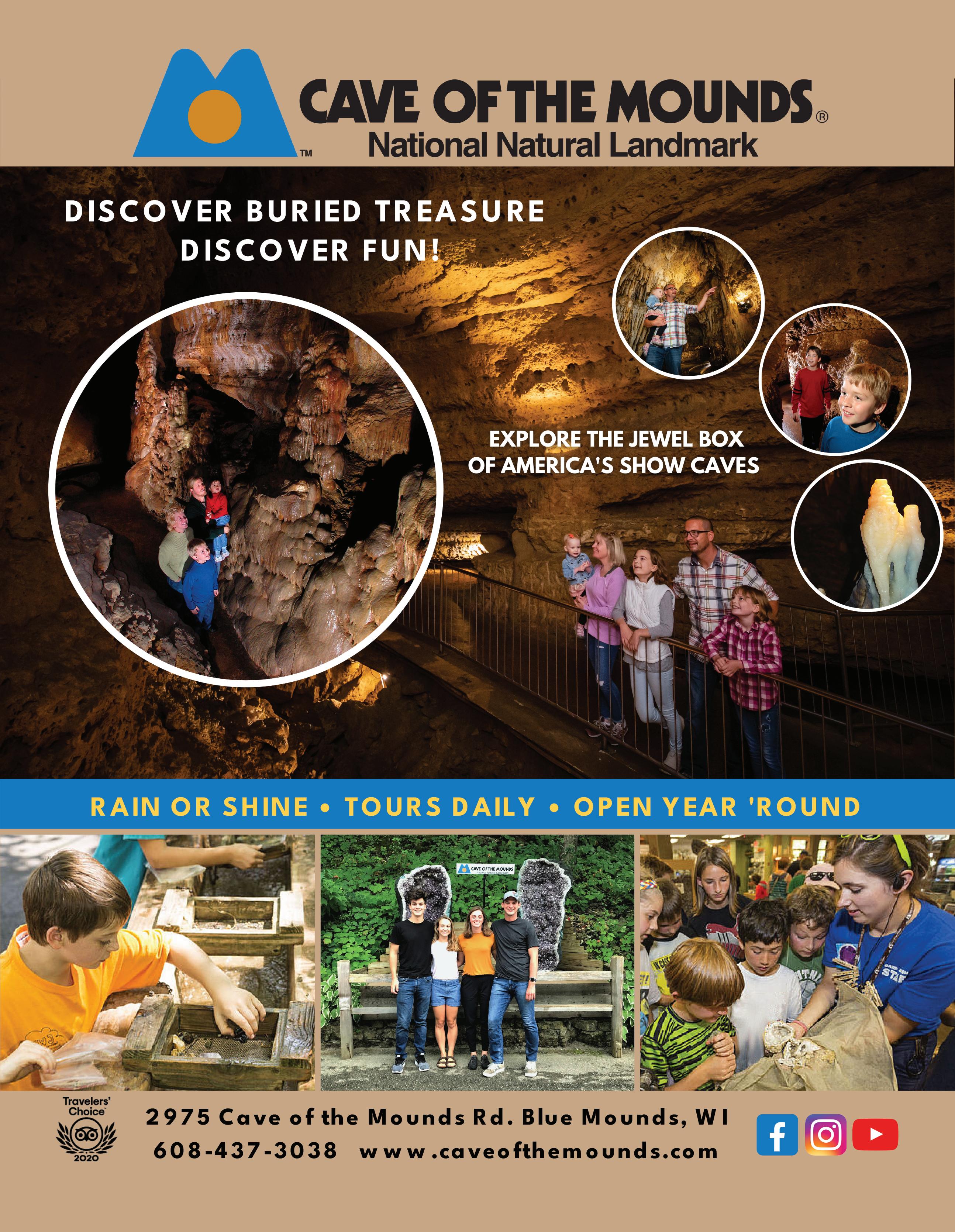 Your worst nightmare is waiting . . . After mysteriously and suddenly closing 75 years ago, Cold Water Canyon has been reopened for tours! Take an after-dark boat ride to the longabandoned canyon, then journey on foot to explore inside. Intense sights, sounds and scares — not for very young children or the faint of heart! Memorial Day thru Halloween; check website for days and times. 608-254-8555 | dellsghostboat.com