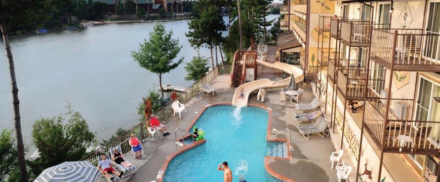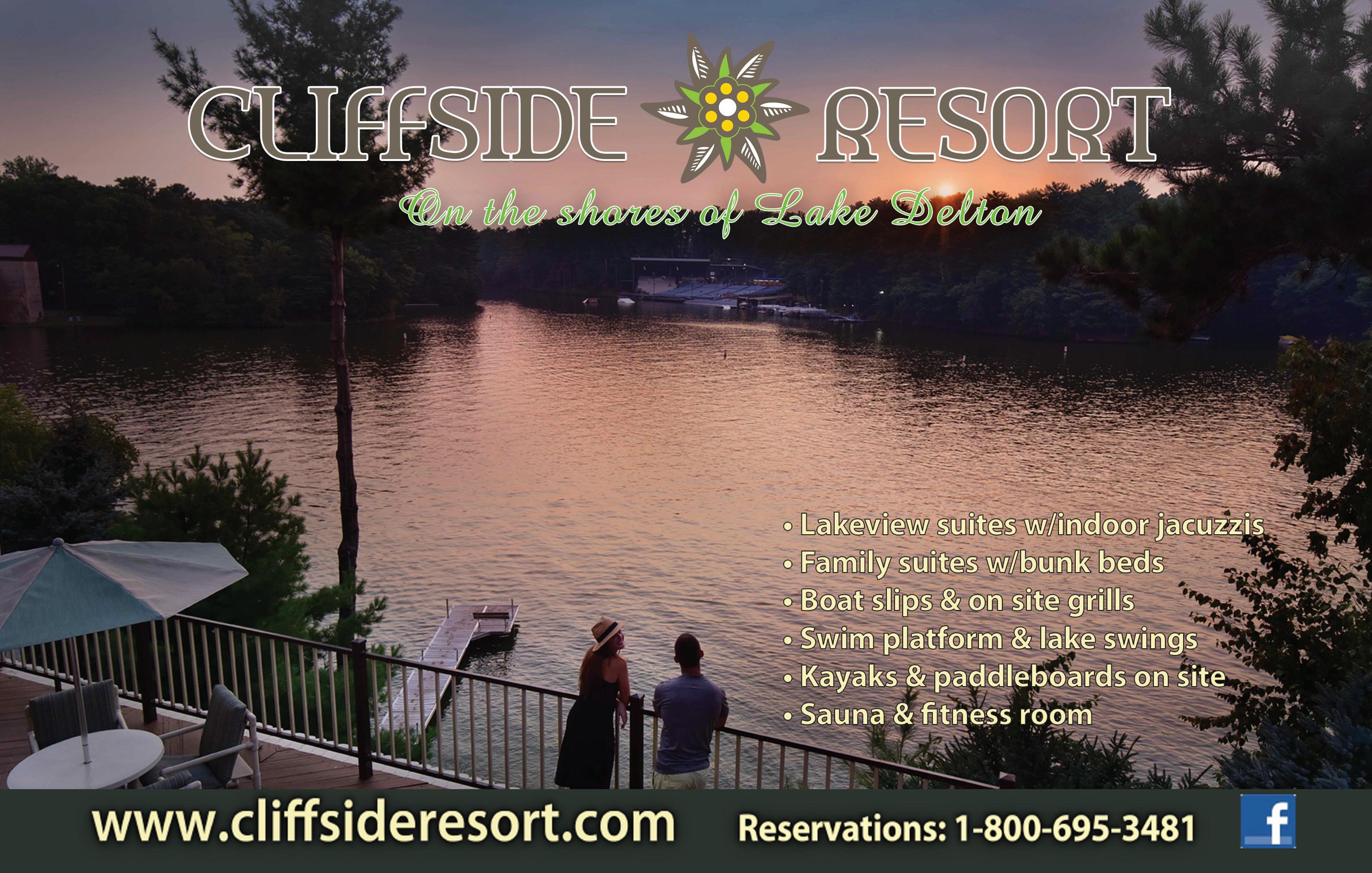 CLIFFSIDE RESORT brings a very specific Dells secret: it’s right on Lake Delton, perched on a sandstone cliff—so you get that “vacation postcard” look without trying.