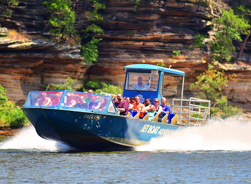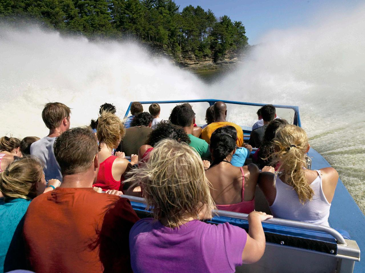 When “cool off” means “get splashed at high speed,” JET BOAT ADVENTURES delivers exactly what the name promises. Their ride is a 50-minute, high-speed, high-splash run on the Wisconsin River—and it’s billed as the only jet boat experience that spans both the Upper Dells and the Lower Dells. Translation: you get big scenery and big grins, all in one shot. Expect fast maneuvers and the kind of moves that turn grown adults into giggling teenagers— power stops, slides, and spin-outs, with It’s sightseeing with a pulse, plus the built-in bonus that nobody stays “too hot” for long.