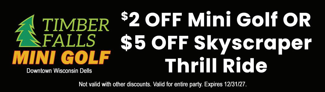 Argh Mateys! Your treasure is here, mini-golf at its finest. Choose from 5 different 18-hole courses. Clean putting greens & beautiful landscaping. Golf among 30,000+ plants & around waterfalls. Haunted Hooks Mini-Golf Thurs., Fri., & Sat., nights in October. Picnic area with shelters. Gift Store. At the intersection of Hwys 12-13-16-23. Exit 87, I90/94. 608-254-7500 | piratescovewisdells.com