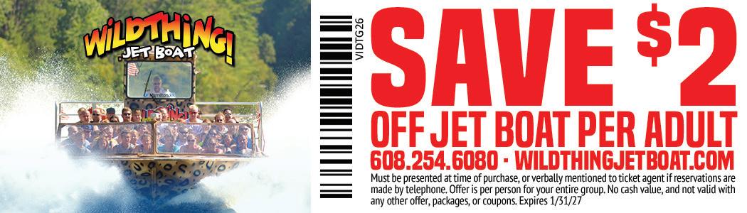 For the ultimate in high speed, high splash fun, hop aboard Jet Boat Adventures! Our jet boats will propel you through the towering formations of the Upper and Lower Dells, with plenty of awesome slides, thrilling spin-outs and fun power stops along the way. No reservations required. But a towel might help. Open daily May – Oct. 608-254-8555 | jetboatadv.com