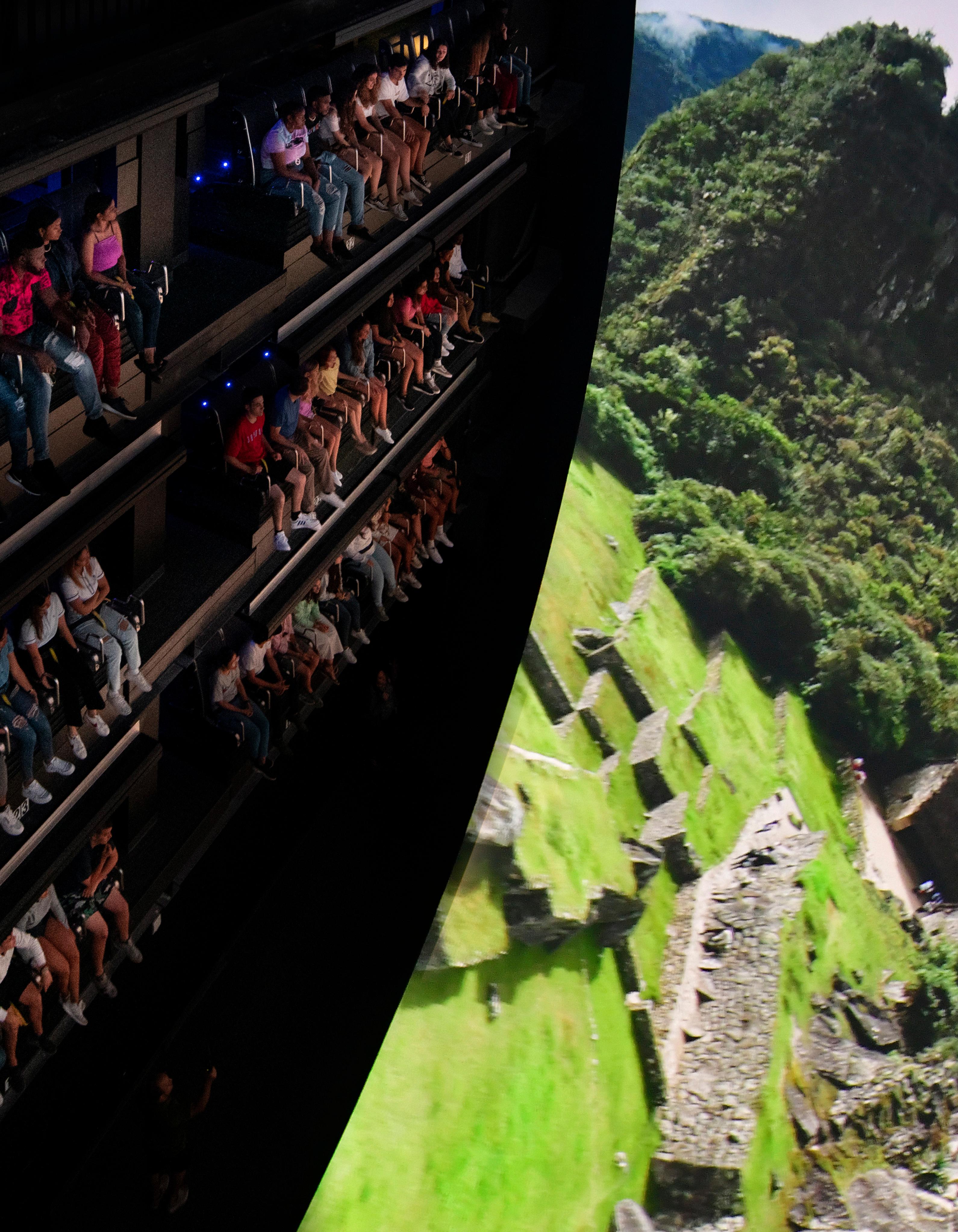 Experience the first fly ride of its kind in Wisconsin Dells! Feel the sensation of flight as your feet dangle and your seat rolls, dips and glides in front of a GIGANTIC 65’ wide x 48’ tall dome screen!
