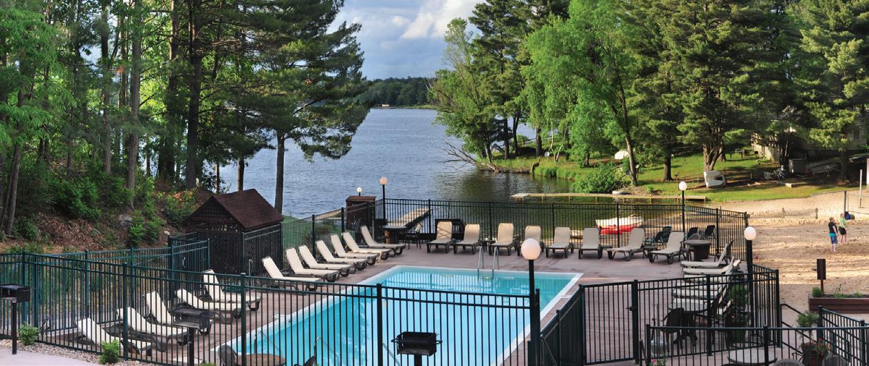 ISLAND POINTE RESORT is a low-drama lake stay designed around actual together time. Surrounded by tall pines, you’ll feel like you’re miles away while in the heart of Lake Delton. An outdoor heated pool, two sandy swimming beaches, boat docks, free Wi-Fi, a playground, and a picnic area— right on Lake Delton. A perfect pick for families, couples, or friend groups who want the Dells nearby—but want their evenings to feel easy and un-rushed.