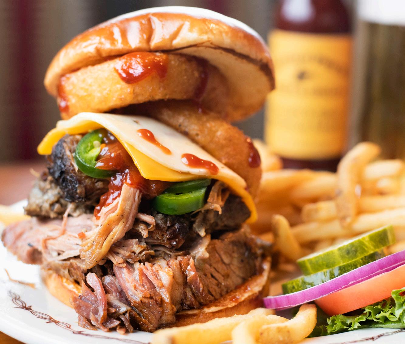 If bold, smoky, and stacked is your foodie love language, the Jack Daniel’s Smokehouse Burger at Edge-O-Dells Bar and Resort will steal your heart. It’s a half-pound burger topped with smoked brisket, cheddar, crispy onion straws, and a sweettangy Jack Daniel’s BBQ sauce. Just five minutes from downtown, Edge-O-Dells Bar and Resort is a local go-to for burgers, brews, and live music on weekends—aka your new favorite hangout.