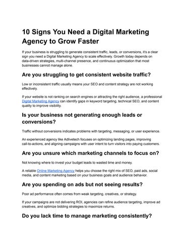 10 Signs You Need a Digital Marketing Agency to Grow Faster