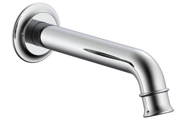 Fasten Spout (3) onto threaded wall outlet by turning clockwise until tight and spout outlet is facing downward and straight.