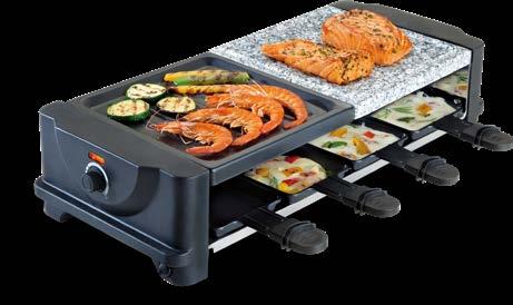Roštilj s ILAG neprianjajućim premazom 19,8 x 19,5 cm, kamena ploča 19,8 x 19,2 cm, uključeno 8 ILAG neprianjajućih raclettes, snaga 1400W.