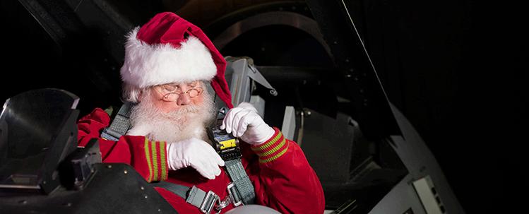 NORAD also tracks Santa using U.S. Air Force F-15, F-16, F-22 and Canadian Air Force CF-18 fighter jets. On Christmas Eve, fighter pilots rendezvous with Santa off the coast of Newfoundland to welcome him to North America. They escort him safely through North American airspace until he returns to the North Pole.