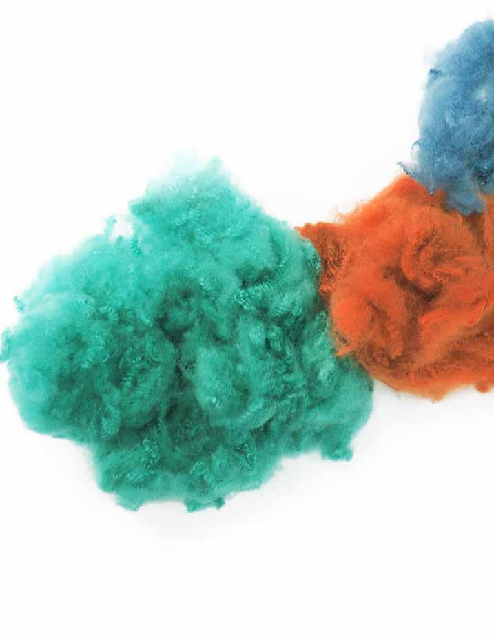 Nuestra fibra de PET recuperada está certificada con el Estándar de reciclado (RCS) tanto en 100% reciclado como en mezclas.
