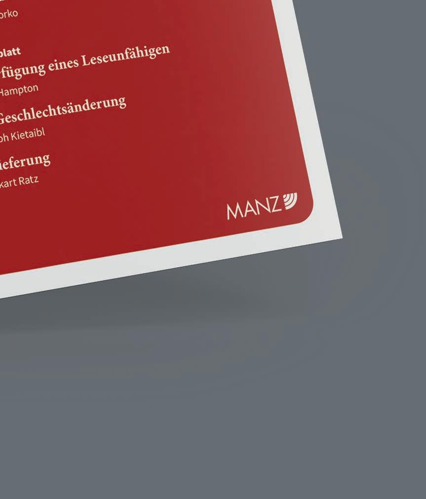 MANZ’sche Verlags- und Universitätsbuchhandlung GmbH, Anschrift: Kohlmarkt 16, 1010 Wien. Verlagsadresse: Johannesgasse 23, 1010 Wien (verlag@manz.at)