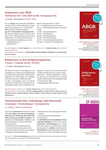 4. Auflage. Teilband §§ 1175 – 1292 (GesbR) erscheint Anfang Dezember 2019. XLIV, 502 Seiten. Geb. EUR 110,– ISBN 978-3-214-16443-0 Gesamtwerk in ca. 20 Teilbänden, Abnahmeverpflichtung für das Gesamtwerk. Online-Version: www.manz.at/abgb