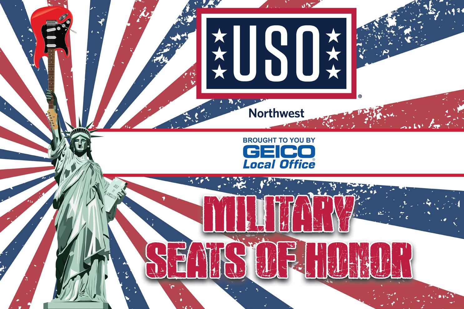 The USO Military Seats of Honor provides active-duty military, dependents, and veterans of all service branches with free tickets and concessions to more than 40 shows, movies and events each and every year. Thank you to GEICO Local Office Silverdale and Kevin and Janice Krieger for sponsoring this program.