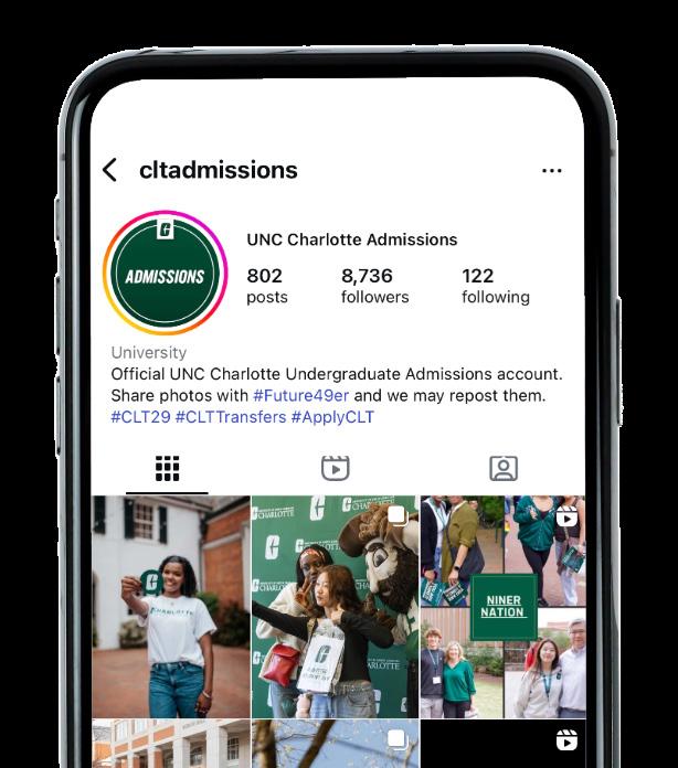 Junior year marks a turning point. For many students and families, it’s when college planning activities kick into high gear. UNC Charlotte has compiled this step-by-step checklist to navigate this important time. At Charlotte, you’ll work with supportive faculty, explore groundbreaking research opportunities and enjoy our handson approach to learning. Our modern campus and thriving city provide many opportunities to learn beyond the classroom and create a tight knit community on campus. to welcome you to Niner Nation!