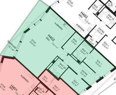 * Dokumentavgiften utgjør 2,5 % av tomtens salgsverdi på tinglysingstidspunktet for den enkelte seksjon. P.t. er tomteverdien antatt å være NOK 8.662,- per kvm BRA for boligen. Det tas forbehold om endring i tomteverdien og dokumentavgiften på tinglysingstidspunktet. Boligkjøperforsikring kr 10 400 – 13 200 (valgfritt tillegg)