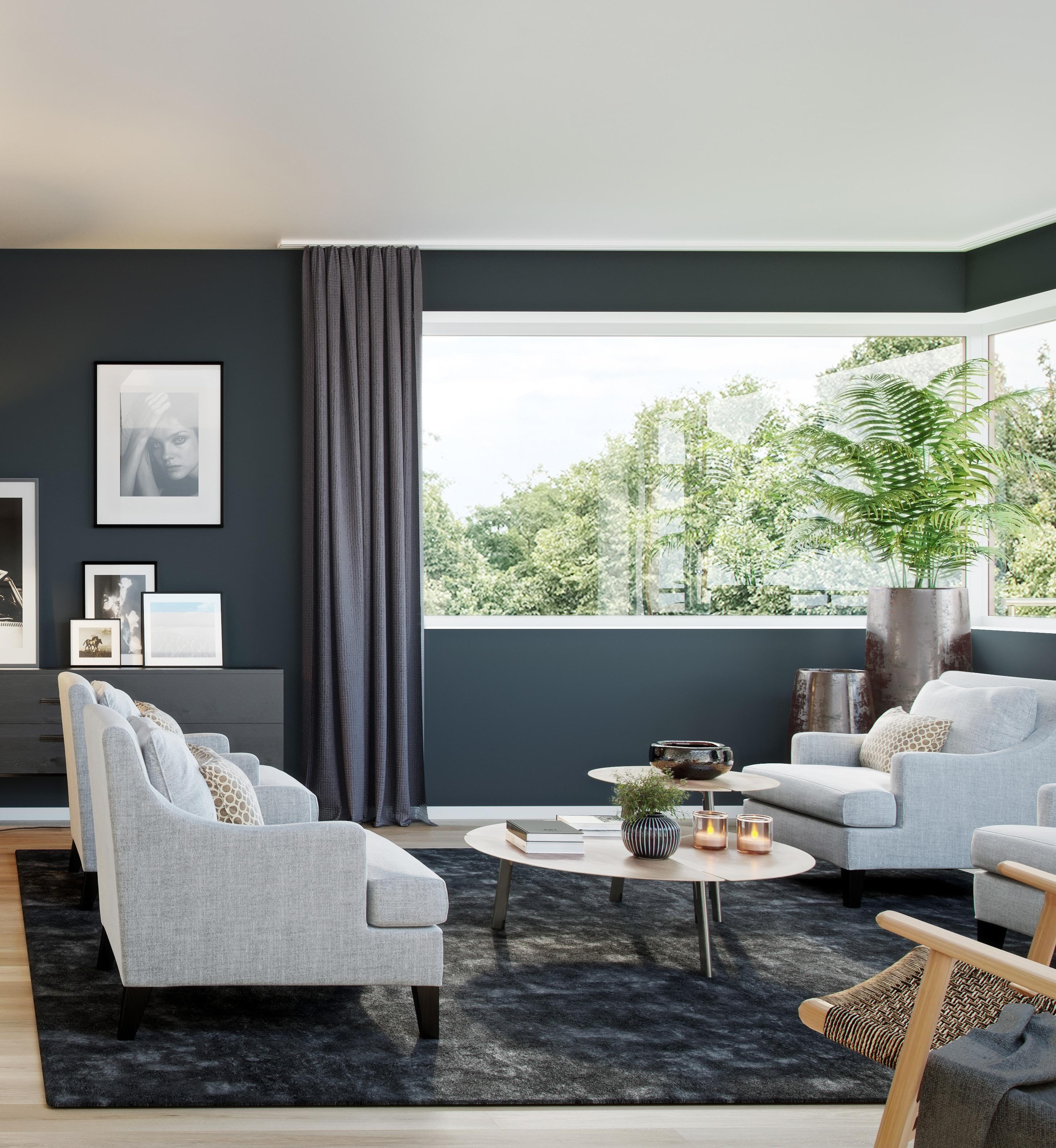 Innvendige karmer i farge etter arkitektens anbefalinger.