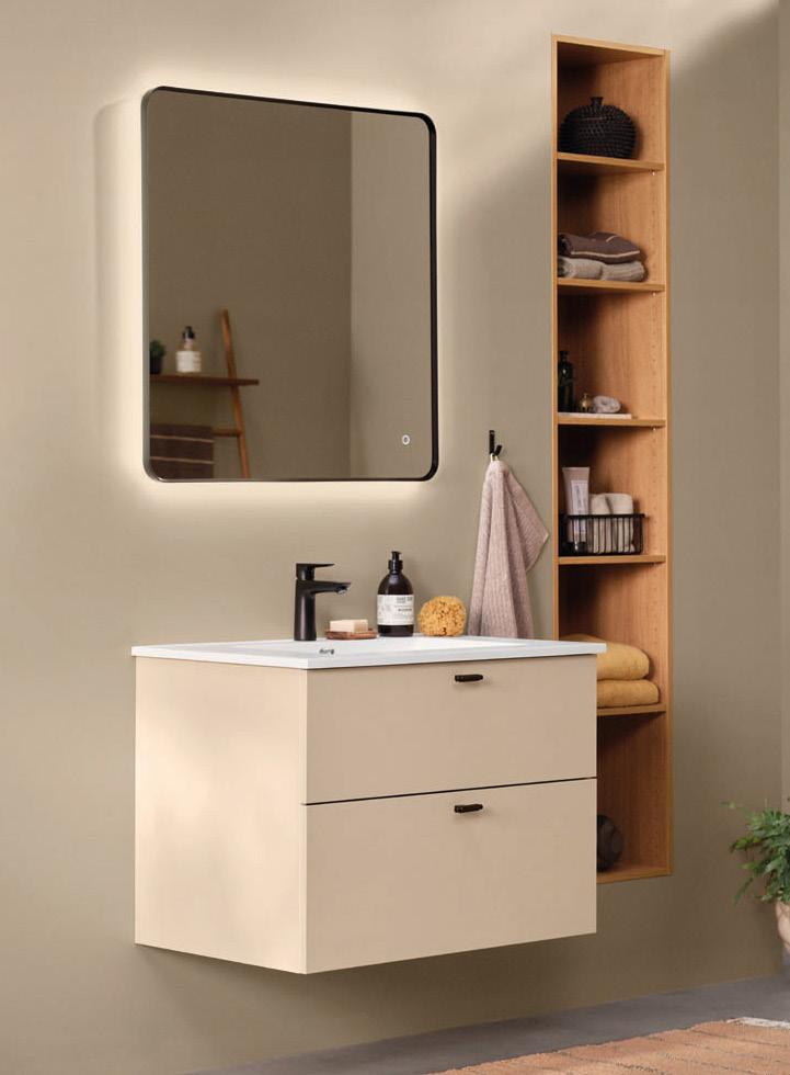 Baderomsinnredning i samme kvalitet som kjøkkeninnredning. Gulvvarme.