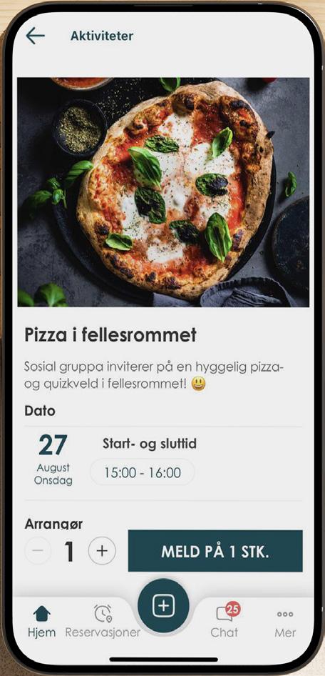 Heime-appen gjør det også enkelt å reservere fellesfasiliteter, finne tur- og aktivitetsfølger, dele tips og holde kontakten med naboene i chat.