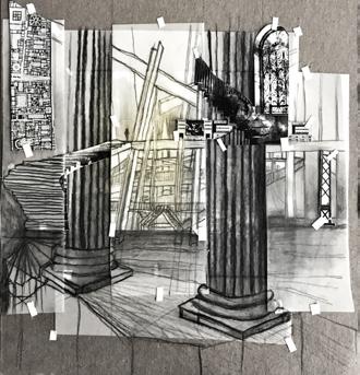 Ruins of buildings are scattered throughout the city; fragments of history existing in the present, providing a glimpse of the cities buried below what we experience today. I became interested in not just drawing this basilica as it currently exists, but what it was over centuries; to tell its story through a drawing. Dissecting the evolution of this building through layers of sketches.