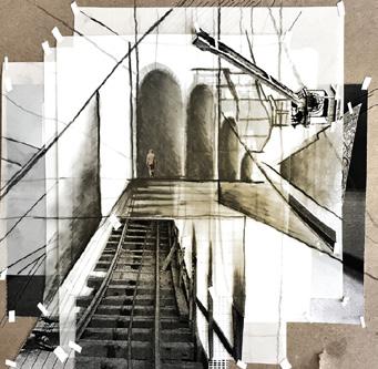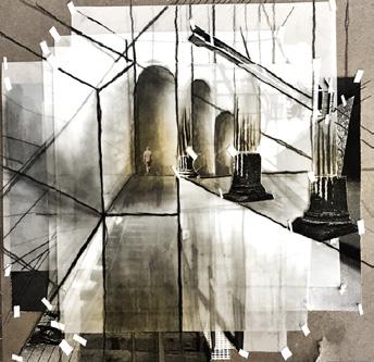 This is where I was inspired to no longer crumble or erase when my sketch wasn’t “just right;” to continue drawing over top, or next to the original. This process created a visual narrative of the basilica starting from the current interior perspective evolving into the ancient columns visible within the walls.