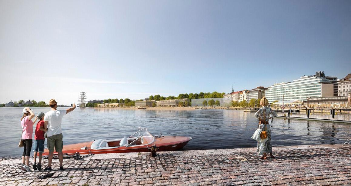 The new museum building will be located next to Helsinki’s Old Market Hall. When approached from the Market Square, the museum building will be the northernmost new building in the Makasiiniranta district. The Makasiiniranta waterfront will be developed into a new public area extending the pedestrian city centre of Helsinki. Photo: Sami Saastamoinen