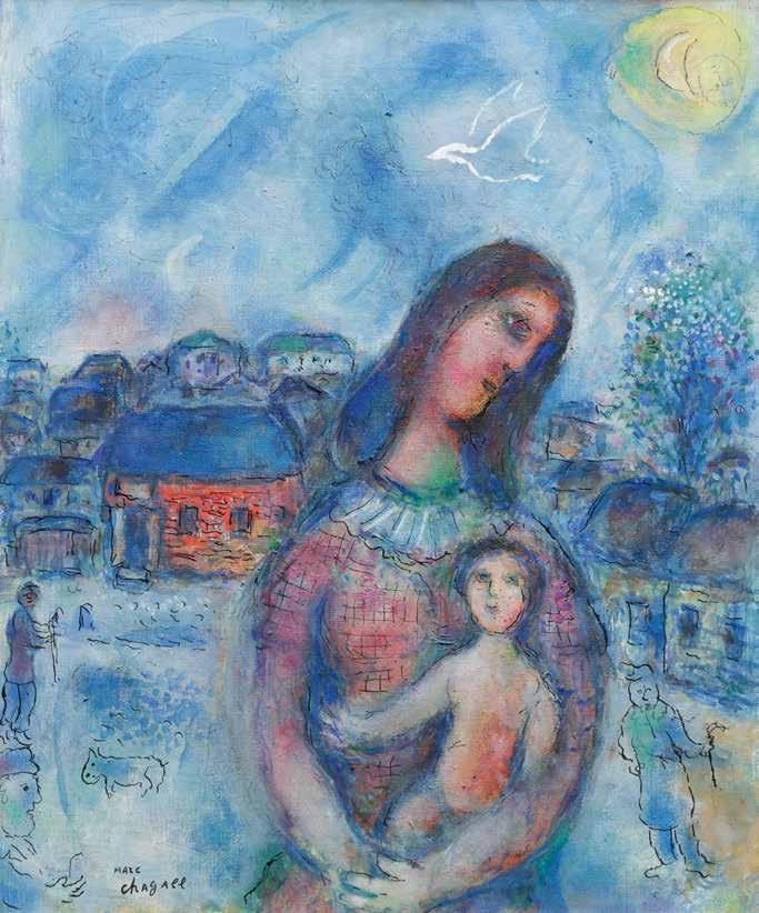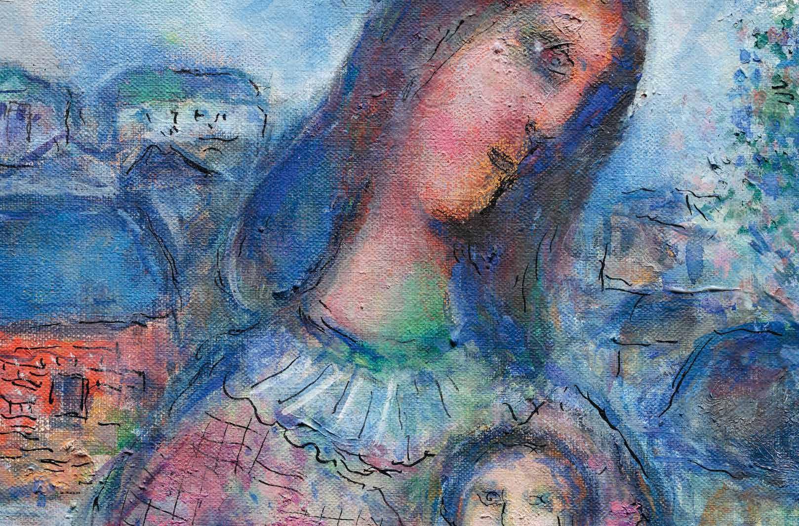 Přiloženo potvrzení autenticity Comité Marc Chagall ze dne 1. 12. 2022. Marc Chagall (vlastním jménem Movša Chackelevič Šagalov) měl vlastní umělecký styl skládající se z expresionismu, symbolismu a kubismu. Někdy je zařazován mezi surrealisty. Narodil se v rodině židovského venkovského obchodníka se zemědělskými produkty jako nejstarší z devíti dětí. Dětství prožil sice v chudobě, ovšem šťastně a vzpomínky na něj se prolínají celým jeho dílem.