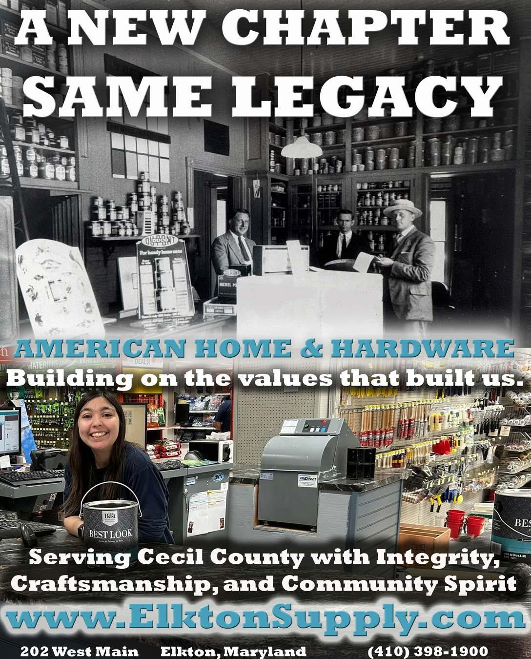 American Home and Hardware is located at 202 West Main Street in Elkton. For more information about American Home and Hardware, visit the website at elktonsupply.com or call 410-398-1900.