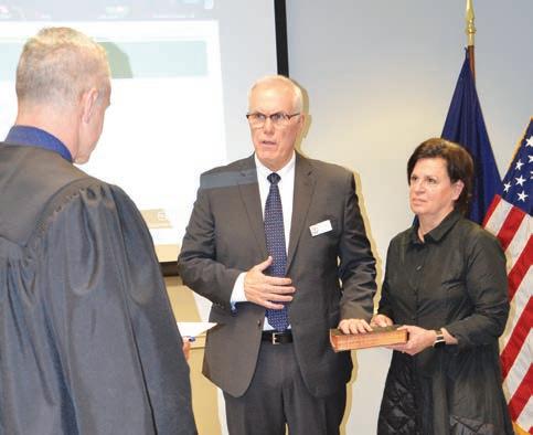 Photo by Richard L. Gaw New Kennett Township Supervisor Mike Bailey, joined by his wife, Diane, was sworn in by Chester County Magisterial Judge Albert M. Iacocca on Jan. 5.