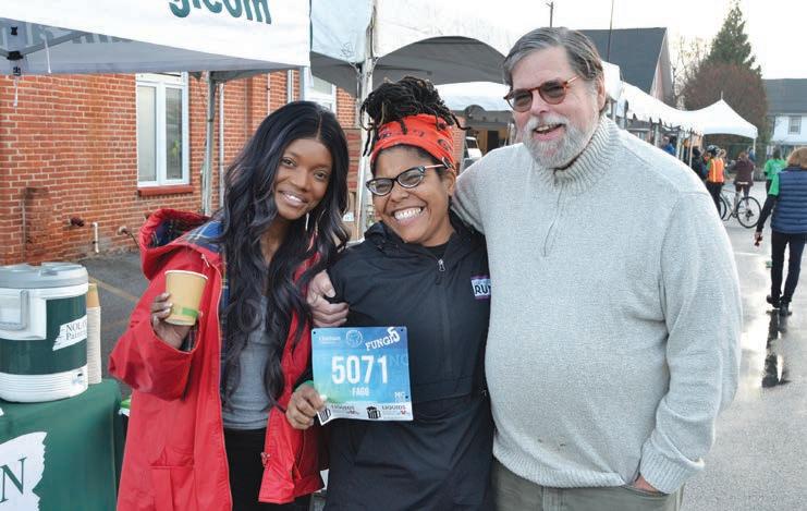 Photo by Richard L. Gaw Amanda Godley-Porto of Lancaster – shown here receiving support from her husband, Mike and their son – was one of nearly 1,000 competitors at the 10th Mushroom Cap Half Marathon, held Nov. 8 in Kennett Square. For a story and additional photos of the race, see Page 1B.