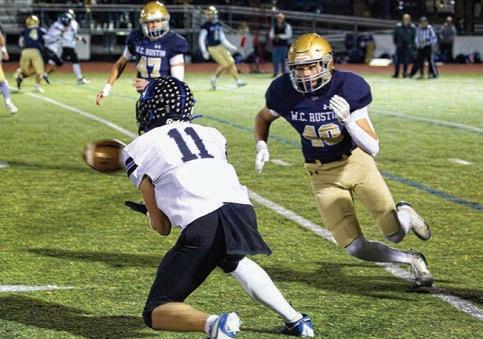 After a 32-yard kickoff return by Gaven Ritch gave Kennett position near midfield, it seemed almost certain that they would counter their opponents’ lead. Passes from quarterback Garrett McCracken to Matthew Reidenberg, Hunter Taylor and Joalex Carabajal moved the chains forward, but on a fourth-andtwo from Rustin’s 16-yard line, the drive ended when McCracken was sacked by Kalief Cunningham at the 27-yard line.
