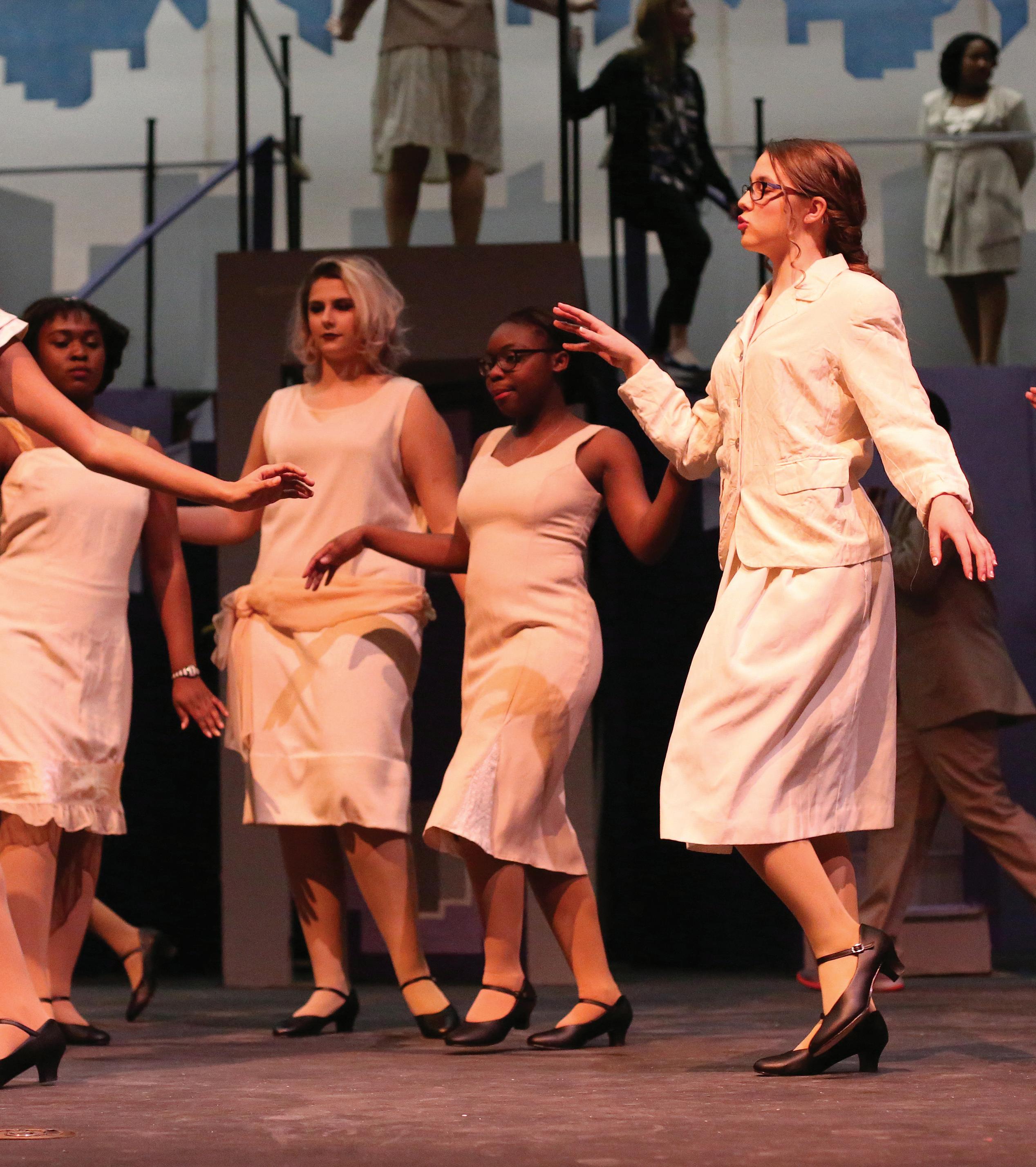 The first full dress rehearsal for “Thoroughly Modern Millie” at the school was typical of theater being made anywhere – semi-organized chaos, with dozens of people on stage and behind the scenes pulling together toward the moment when the lights come up and the audience sees the result of months of hard work.