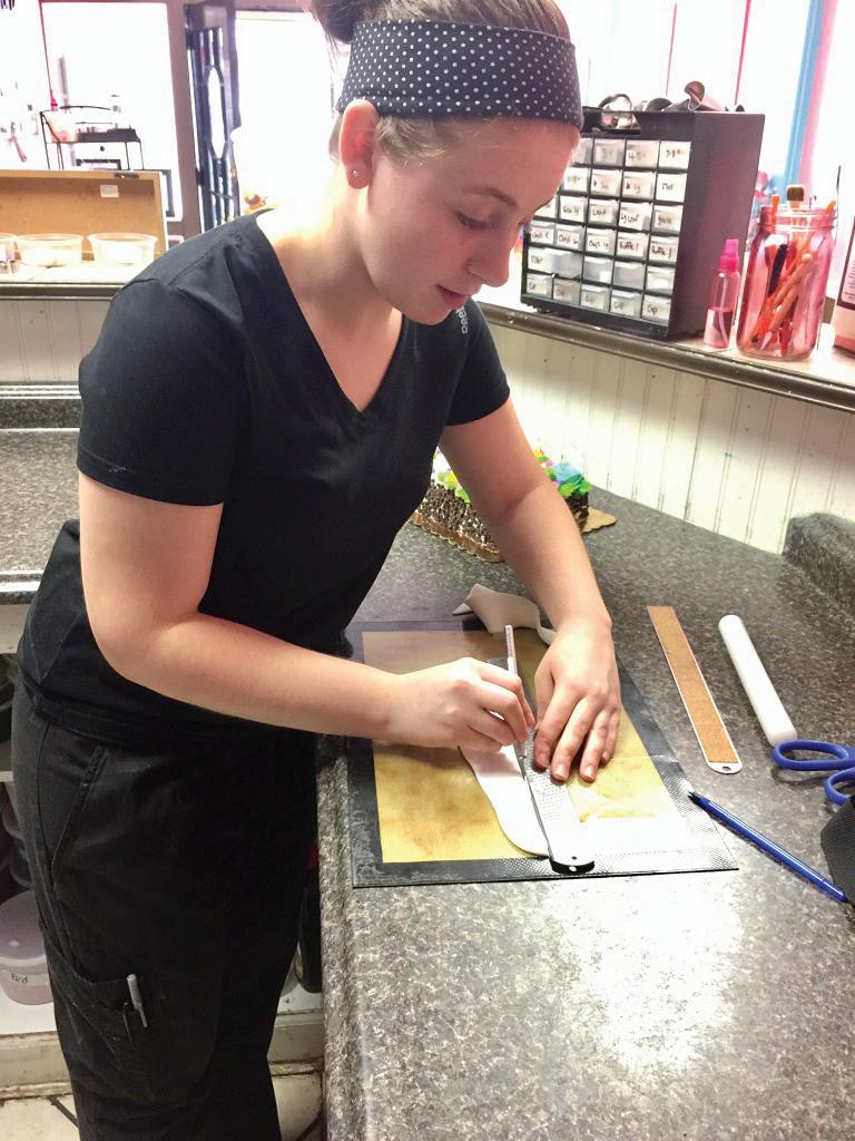 On the afternoon of her big day, she watched as owner Tammy Nichols and baker Brittany Snyder made a fondant “Happy Birthday, Wendy” banner for a sheet cake festooned with flowers.
