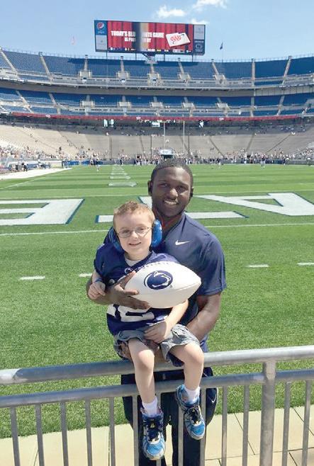 In a role reversal, it was Godwin who looked up to the young boy, not the other way around. He was impressed with Hayden’s ability to look past the limitations of his body and make it into a non-event. The game served as a mere introduction to what soon blossomed into something greater. Before long, Godwin – and his girlfriend Mariah DelPercio, the daughter of Coach DelPercio – would make regular visits to the Schlenner home to play video games, toss the football and enjoy birthday parties. Throughout Godwin’s time at Penn State, he and Mariah – who also attends Penn State – would continue to pay visits when they came home to Middletown. During Godwin’s three-year career at Penn State, the Schlenner family frequently made the eight-hour round trip to State College to see him play.