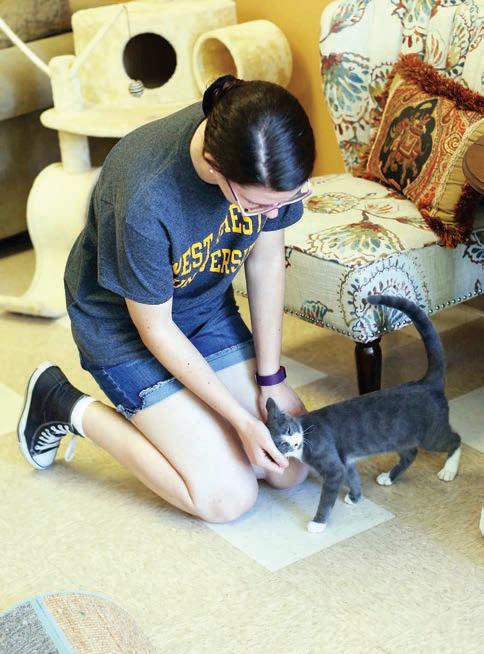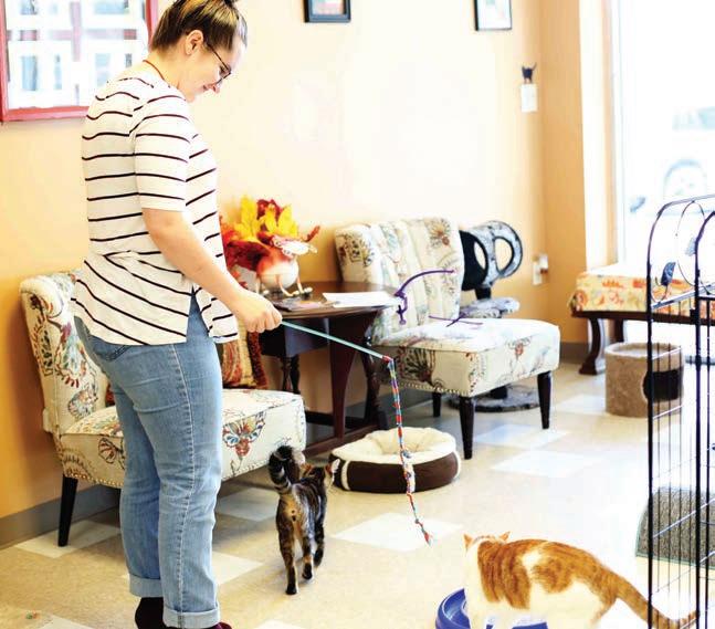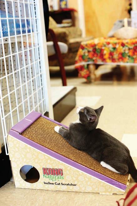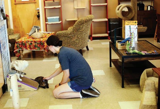 The cafe space had previously been the Treisners’ pet store, Paw & Claws, where they also had cats from the rescue, outside of cages. The transition to the non-profit has allowed the monies brought in to go toward the rescue as well as to maintaining the kitty cafe.