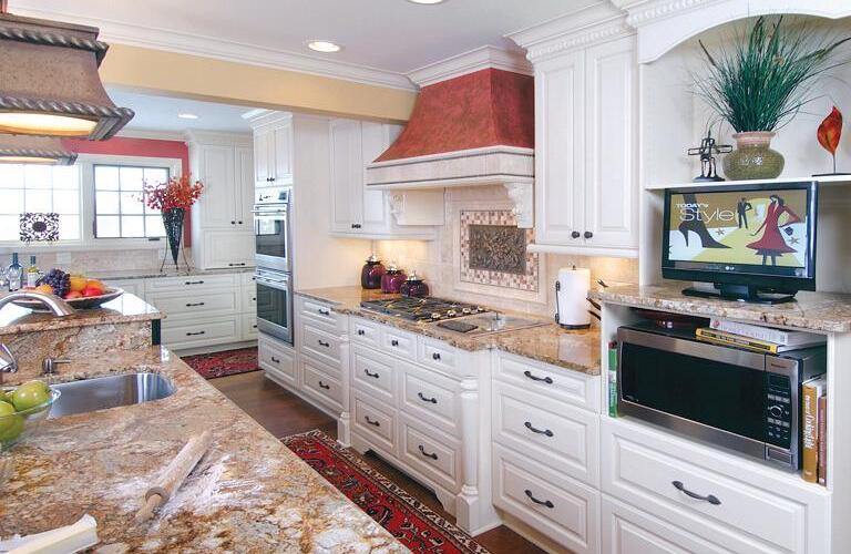 To create a show-stopping visual effect, use metallics in details throughout your home. Chrome and nickel are hot, and there’s a current resurgence of brass and gold. If you have metal in your backsplash tiles, add a centerpiece in the same metal to tie the entire room together. Keep in mind