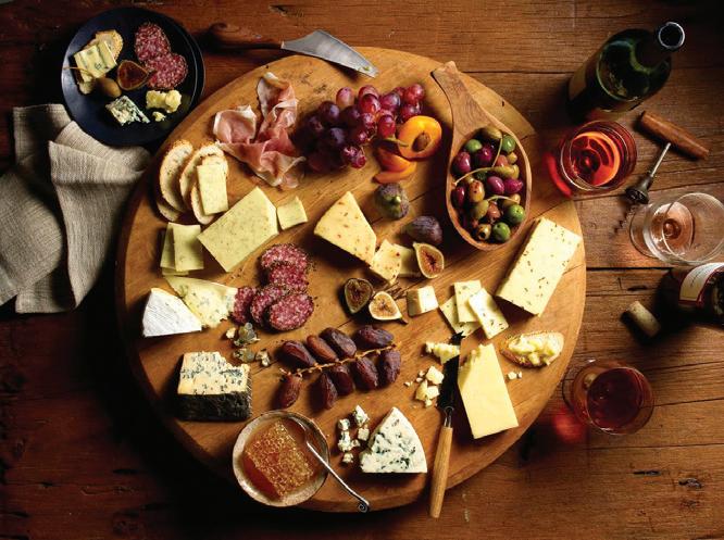 Breads to consider are flatbread, grilled crostini or baguettes, while great charcuterie options include prosciutto or a pork pâté. For sweets, figs, honey or berry preserves are delicious additions. And for savory and salty pairings, include Marcona almonds, cornichon pickles or Kalamata olives.