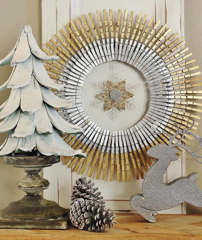 Tired of hanging the same wreath on your door year after year? Create a new, modern focal point that can be used for multiple occasions. Spray paint a wooden wreath form and mini clothespins silver and gold. Once dry, adhere the clothespins to the wreath form in varying layers. Use an adhesive that dries instantly and won’t leave you with messy glue gun strands, such as Krazy Glue’s Maximum Bond No-Run Gel, which will give you time to decorate the rest of your home, rather than cleaning up your crafting space.