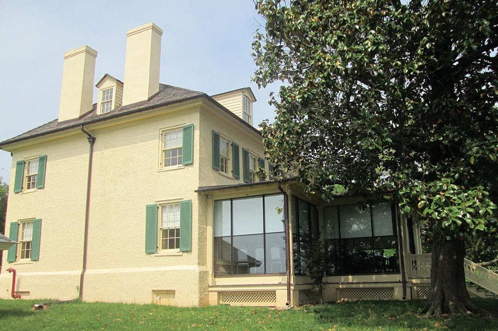is a spectacular reminder of the past. Fully restored, it is used as office and meeting space, but retains its period details, including the original wooden plank floors, stairs carefully inlaid with diamond shapes of a lighter wood, fireplaces in every room, and a sprawling porch (now enclosed), where past generations could sit and catch the breeze from the Susquehanna and admire the gardens that filled the terraces below.