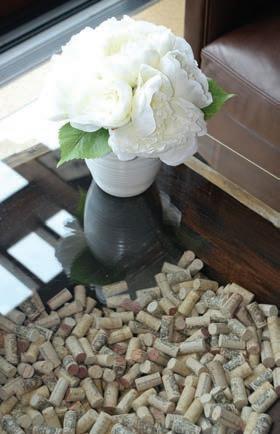 There are special design features at nearly every turn: The tasting room bar was made from recycled glass, and the wooden wall near the bar is made from reclaimed and re-purposed wood taken from the former tasting room, which is now used as an additional tasting room space. Soldier bricks reclaimed from the ruins near the tasting room have been reclaimed and were used in the construction of the fireplace and are also seen in the building’s foyer area.