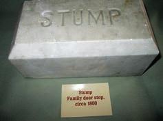 purchased Perry Point, which at that time covered about 1,800 acres. During Stump’s ownership, British troops came up the Chesapeake Bay in the War of 1812, burning Havre de Grace, the Principio Iron Works, and a grist mill owned by Stump’s cousin, but for some reason they spared the mill and mansion at Perry Point. By that time, the grist mill had been overtaken by progress, and was probably used more for storage than milling grain. In the museum display case is a carved block with the Stump name, as well as handforged iron nails, a gnarled shoe and other objects recovered during an archeological dig. During the Civil War, the U.S. Government took over Perry Point and used it as a