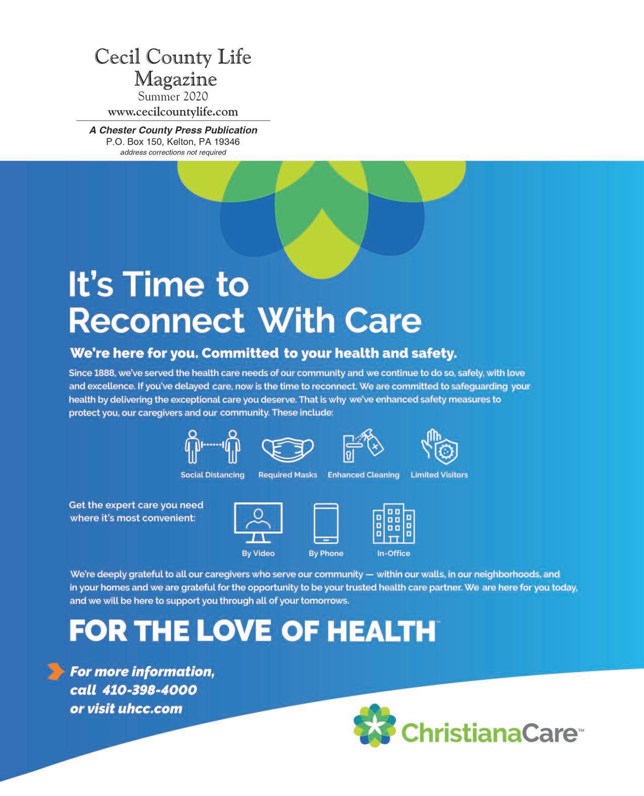 We’re glad to share this issue of Cecil County Life with you, and we wish you all good health and good cheer as we prepare to deliver the next issue of the magazine in the fall of 2020.