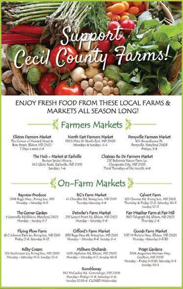 Due to COVID-19, the following scheduled events are subject to change or be cancelled. Please visit the listed websites for up-to-date information. To learn more about Cecil County Tourism, visit www.ccgov.org/government/ tourism