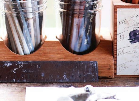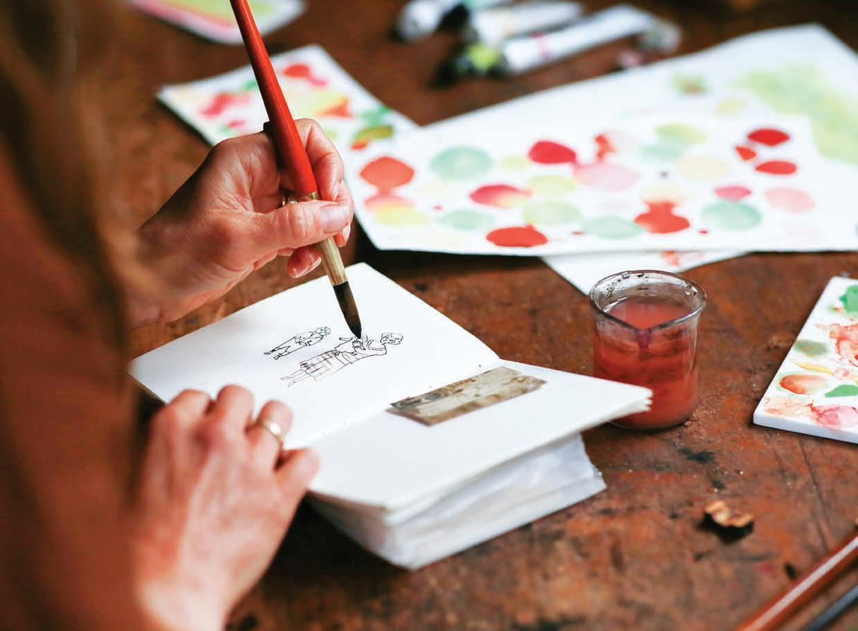 a published illustrator; a jewelry designer and the maker of handmade journals – with dozens of appearances at artisan shows to her credit. She points to a three-acre patch of woods that borders the house, the workshop and the studio.