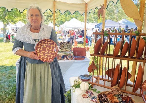 Vendor Rae Tamashausky had a tent filled with redware that 18th century residents in this area likely would have used. She made the pottery from local clay that is fired in an electric kiln so it can be used as earthenware.
