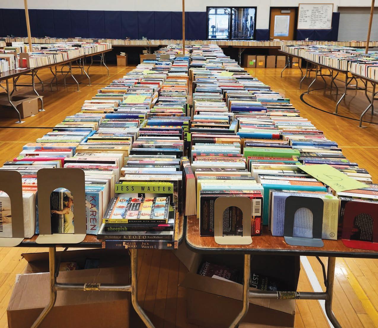 pers waiting for doors to open, the sale fills several rooms of the high school, often raising more than $40,000 each year.